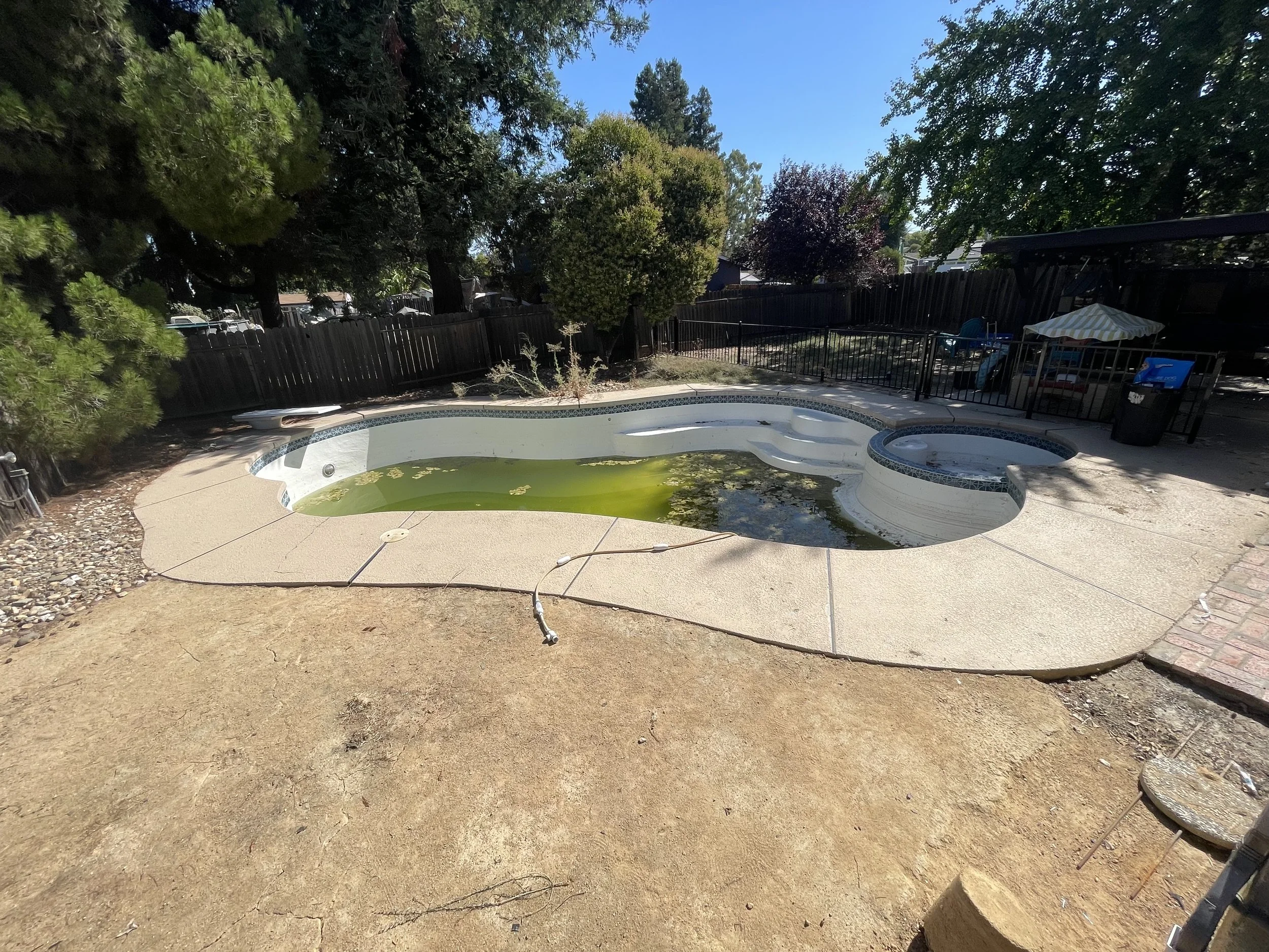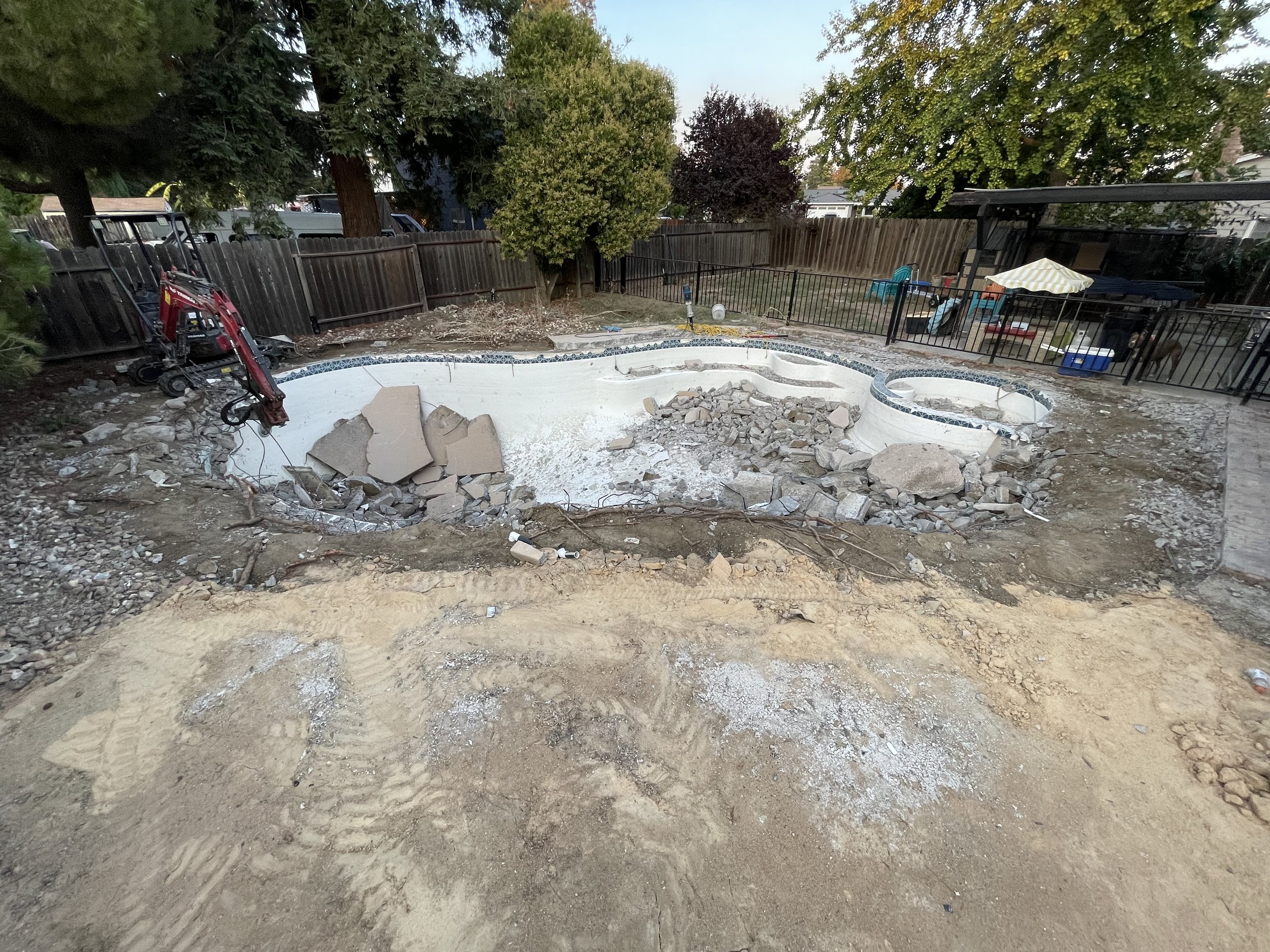 The pictures below showcase a complete pool demolition. Which involved fully breaking up the entire pool structure, tearing down the concrete and other pool parts, and lastly, filling the area with dirt.